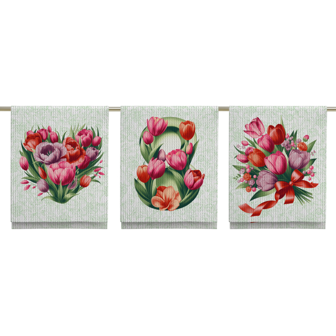 до 5%Набор из трёх вафельных полотенец с петельками. Яркие, стойкие рисунки будут радовать вас долгое время. Вафельные полотенца отлично впитывают воду и мягкие на ощупь.